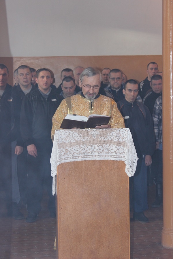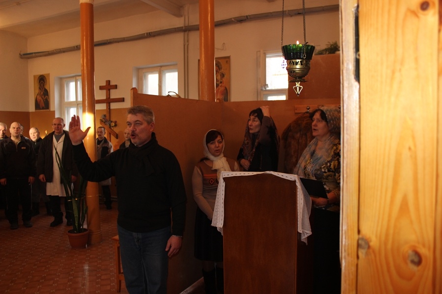 Молящиеся прихожане - пациенты спецбольницы, осужденные за тяжкие преступления и признанные психически больными.